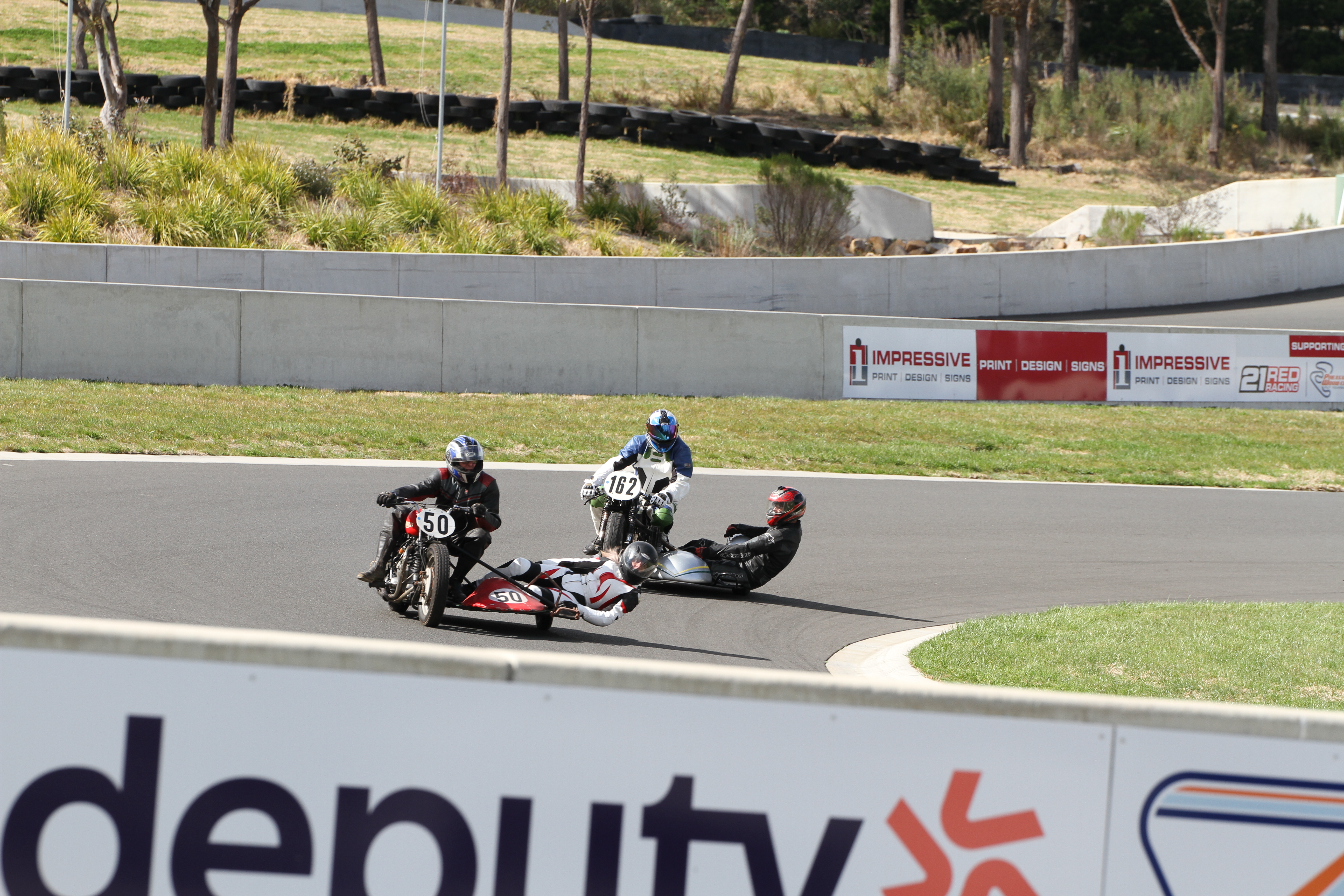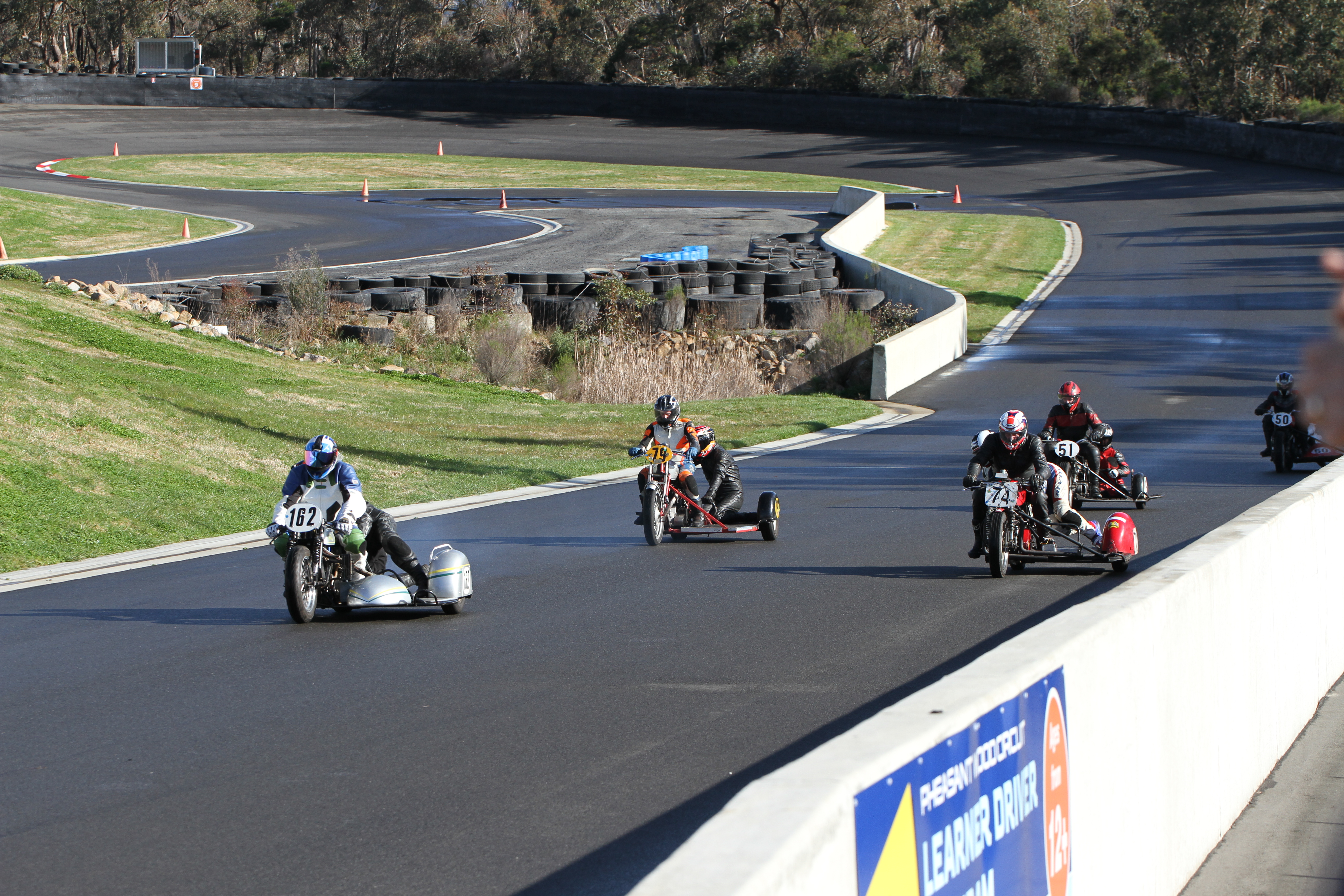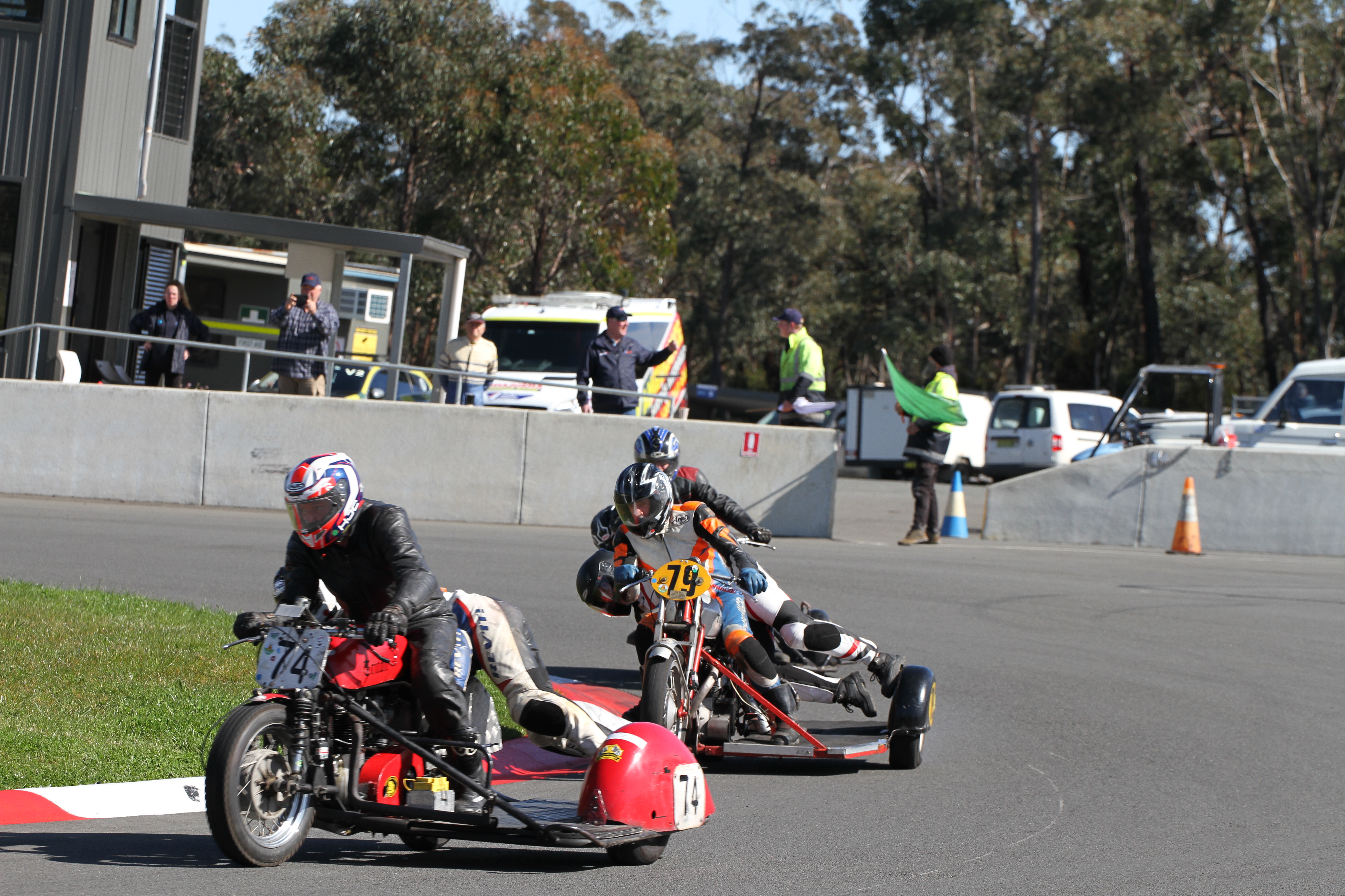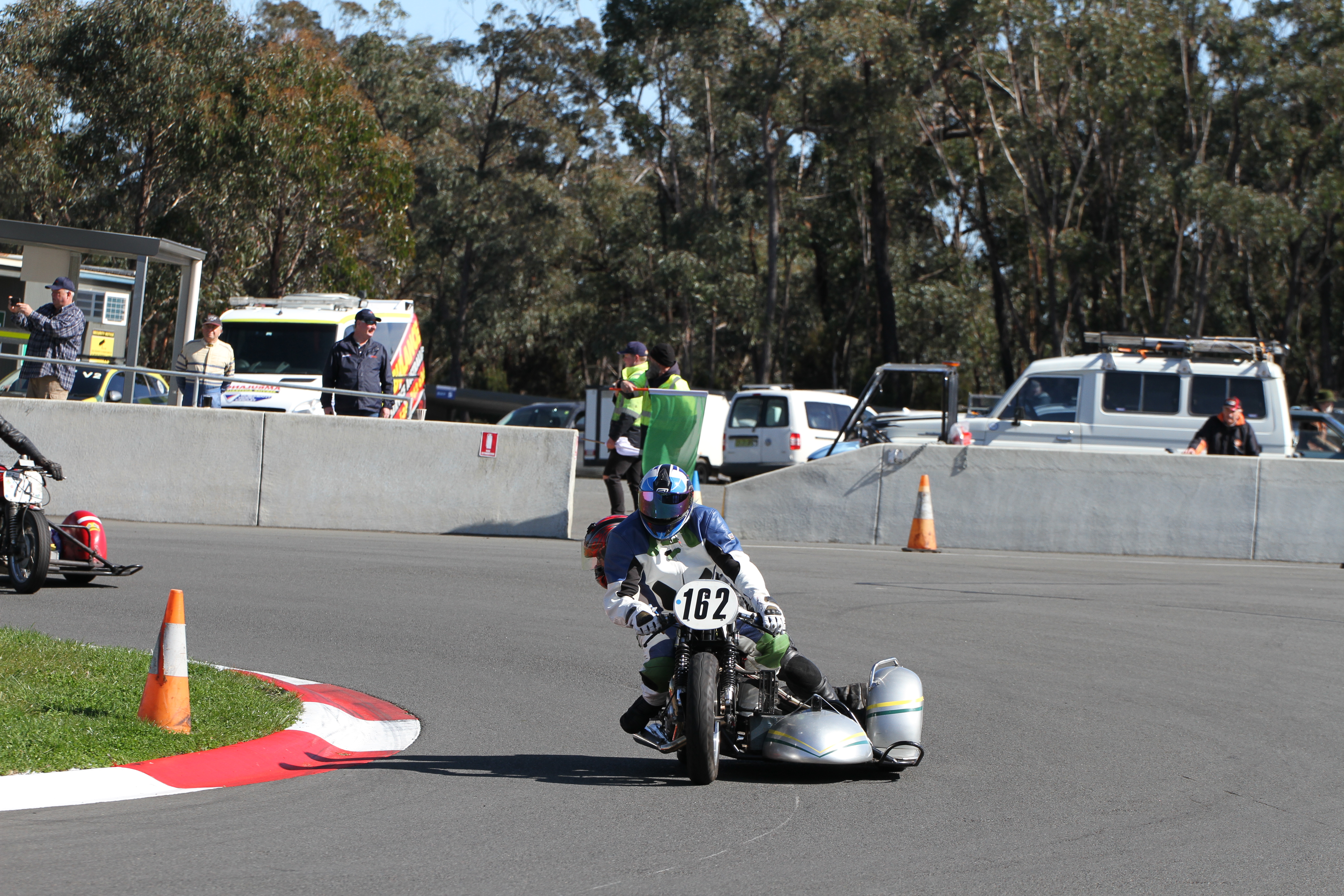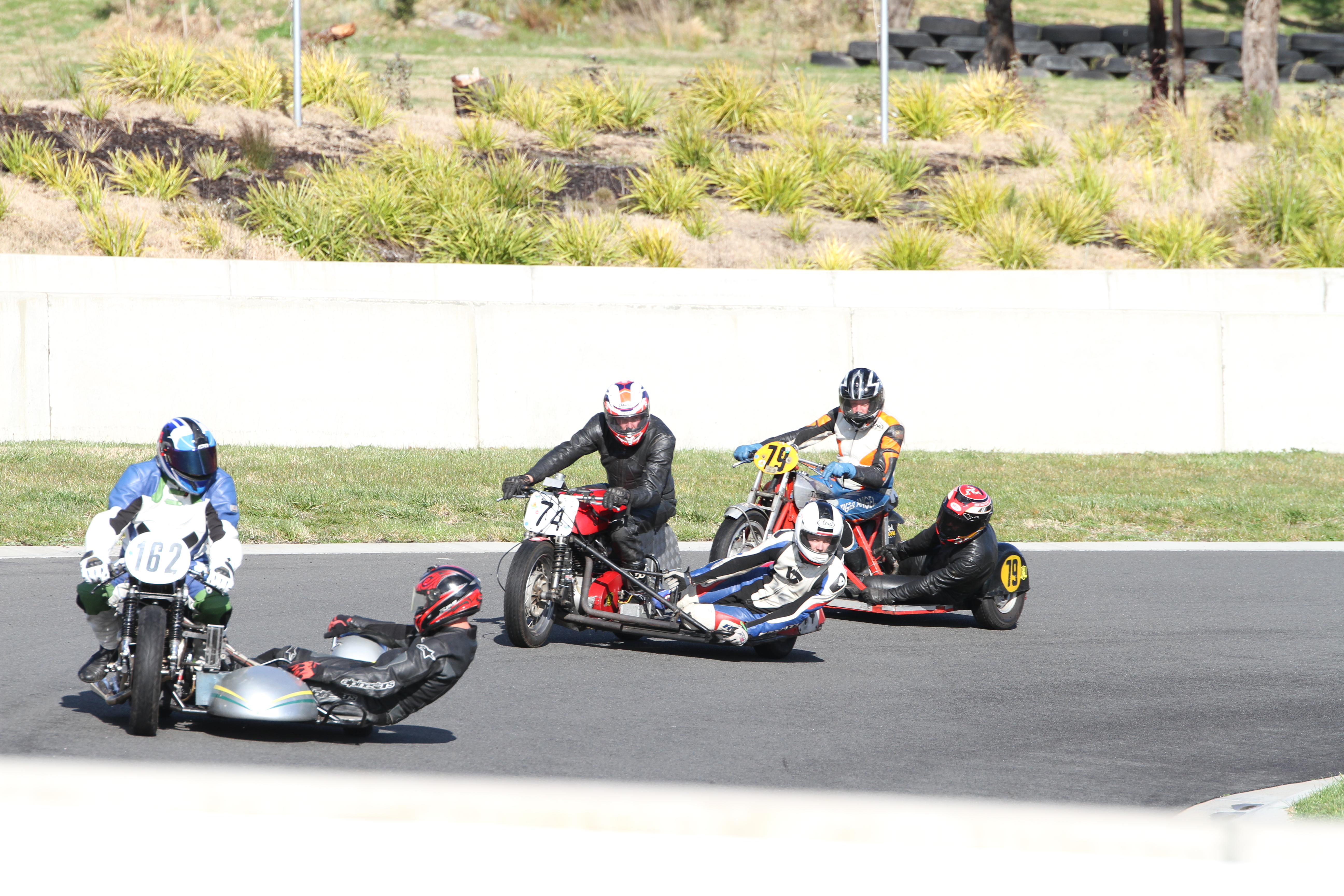 Due to the decreasing number of outfits running the passengers took a chance to share experience by swapping rides throughout Sundays events. Race four was the handicap and only three outfits took to the grid, unfortunately this event was red flagged when the Freeman brothers on number 51 rolled at the back of the track. Both rider and passenger were conscious when tended to by track medical staff, but passenger Billy was transferred to NSW Ambulance who took him to Goulburn Hospital with concerns about his leg. He was discharged later that day after scans cleared him of any major damage.