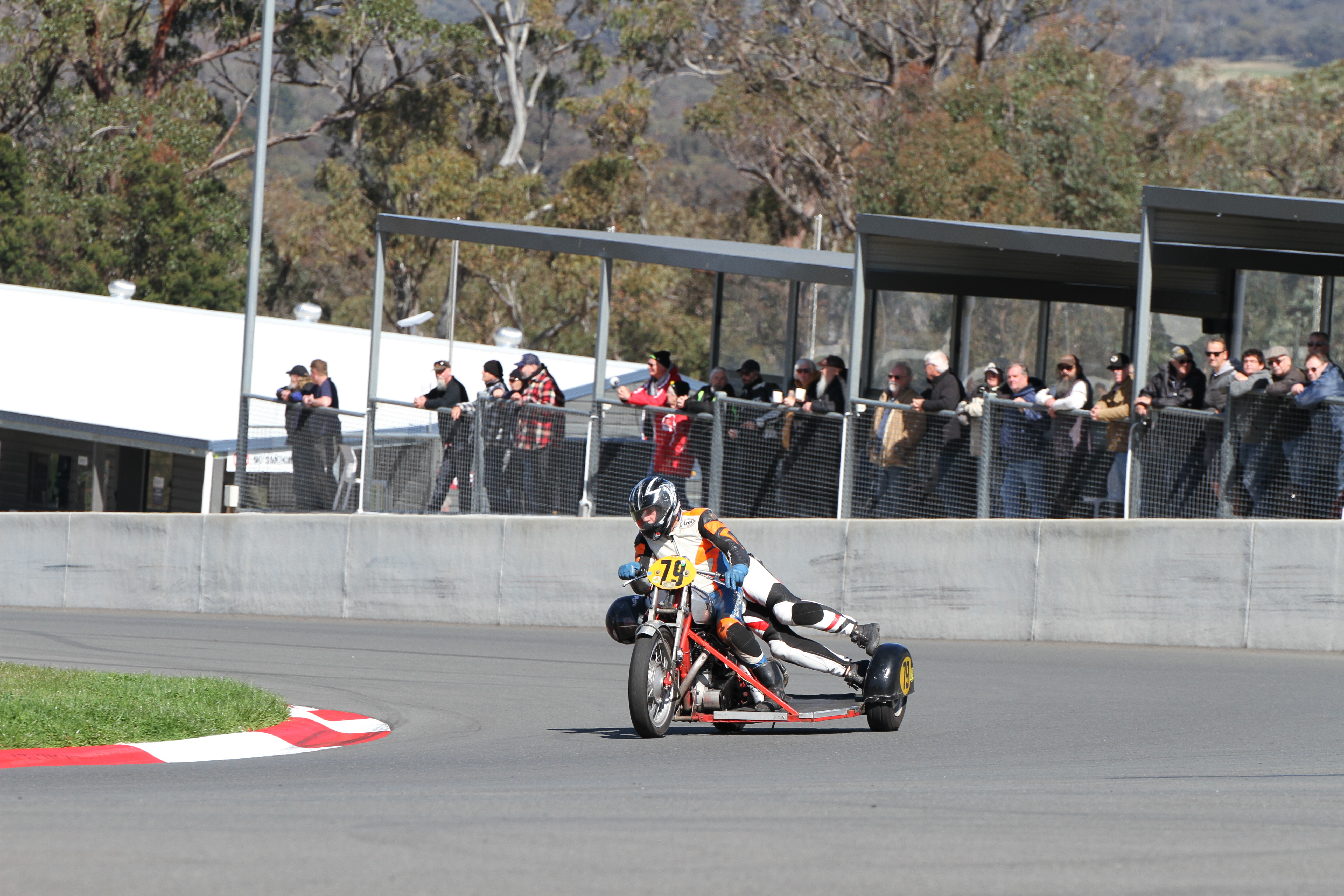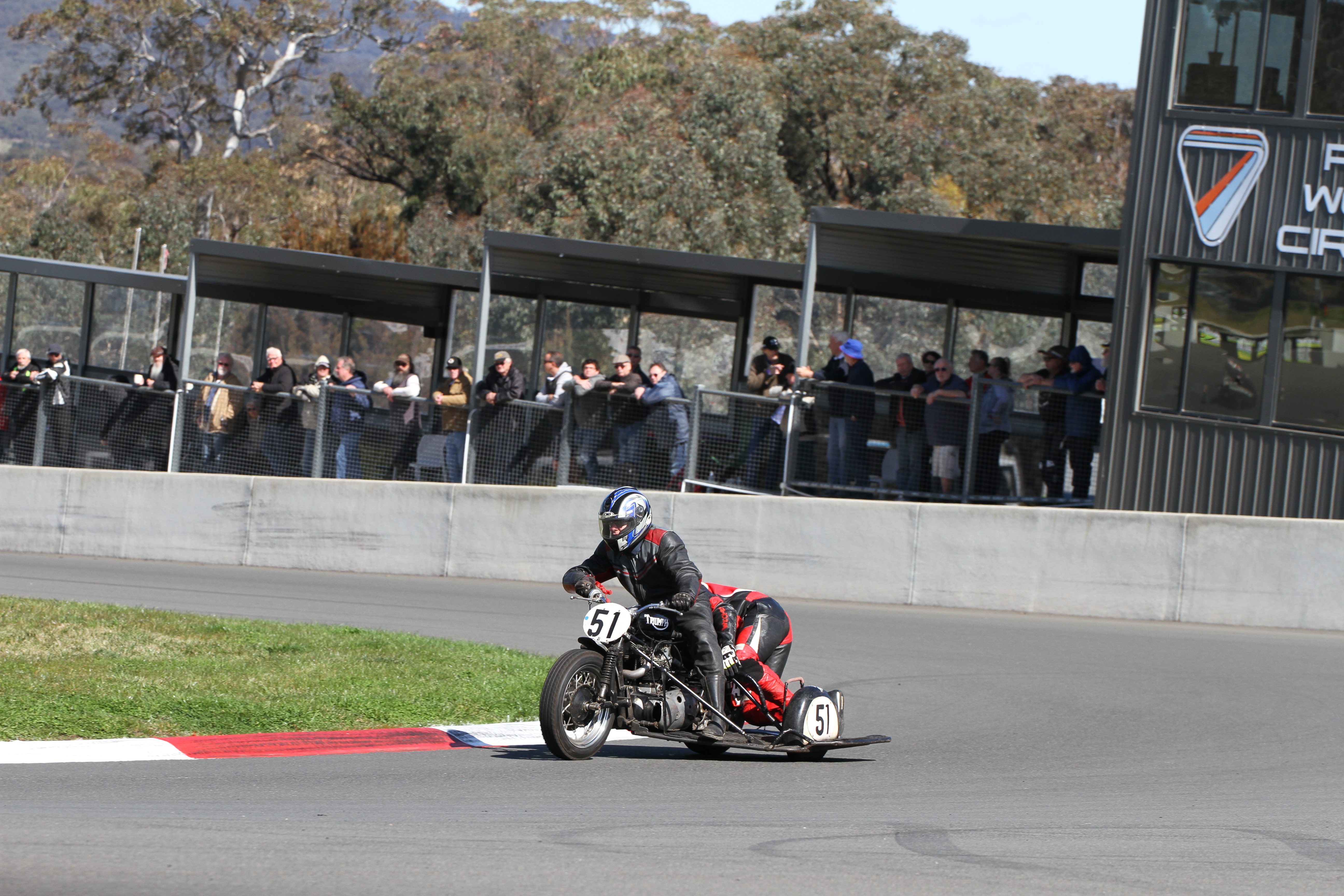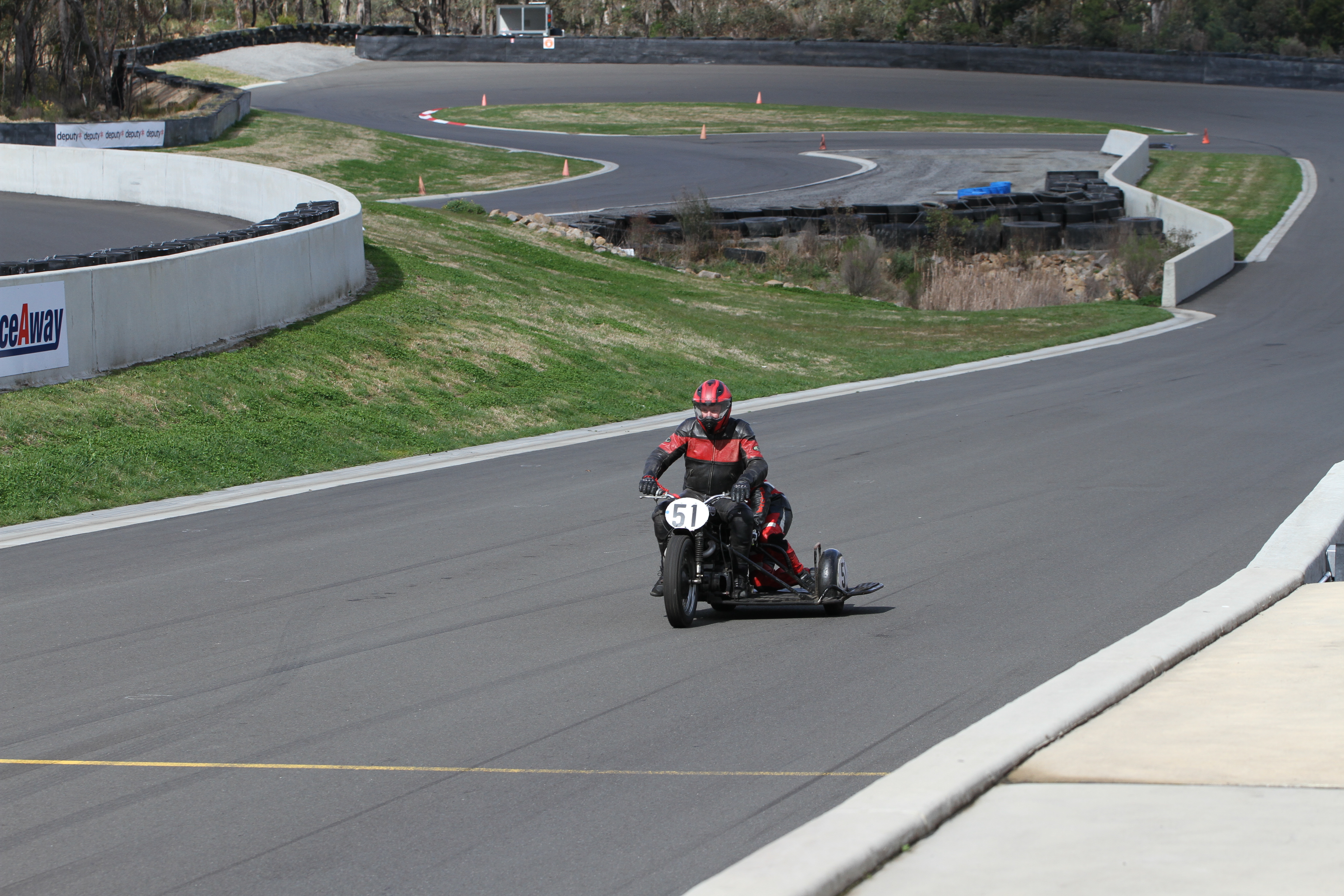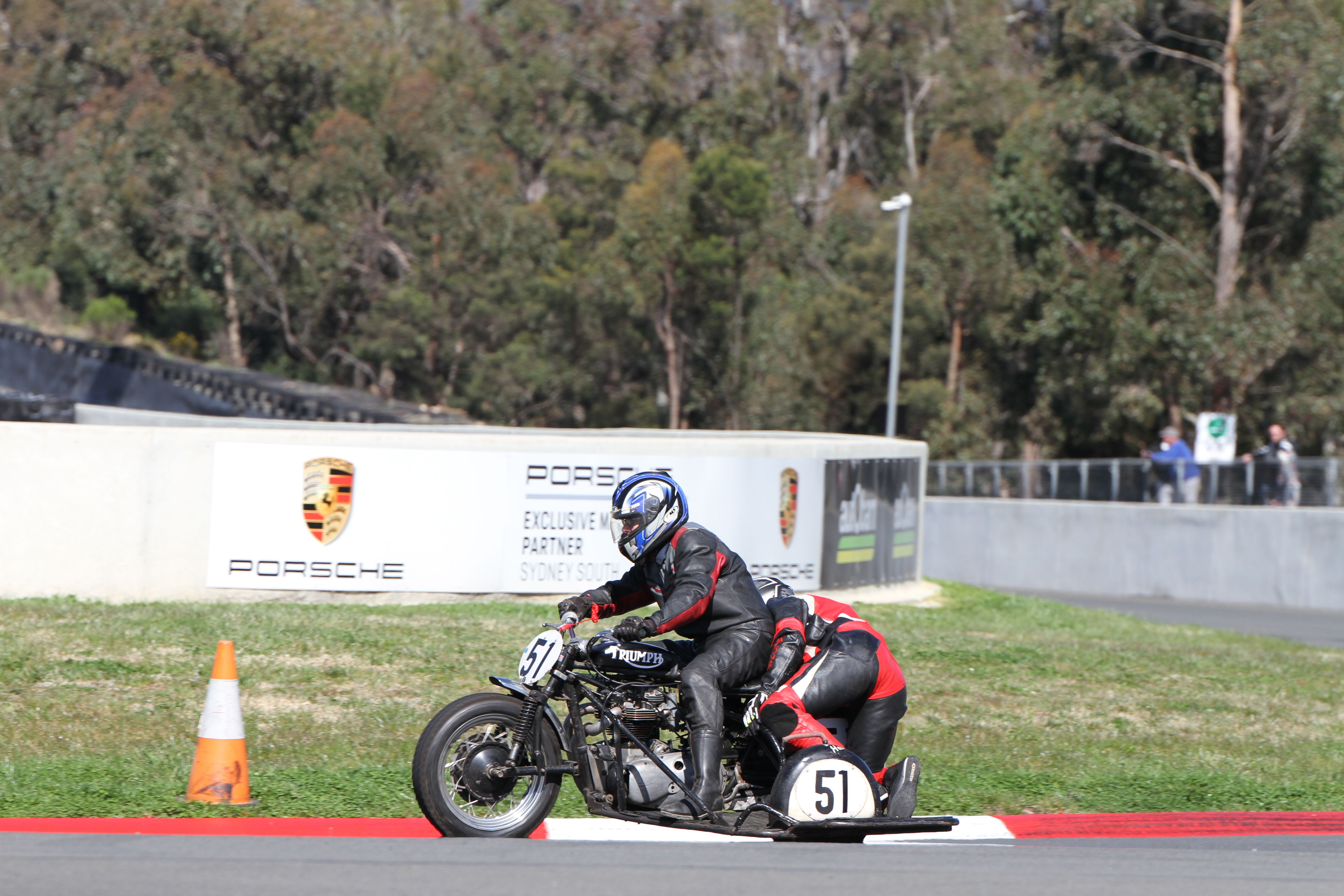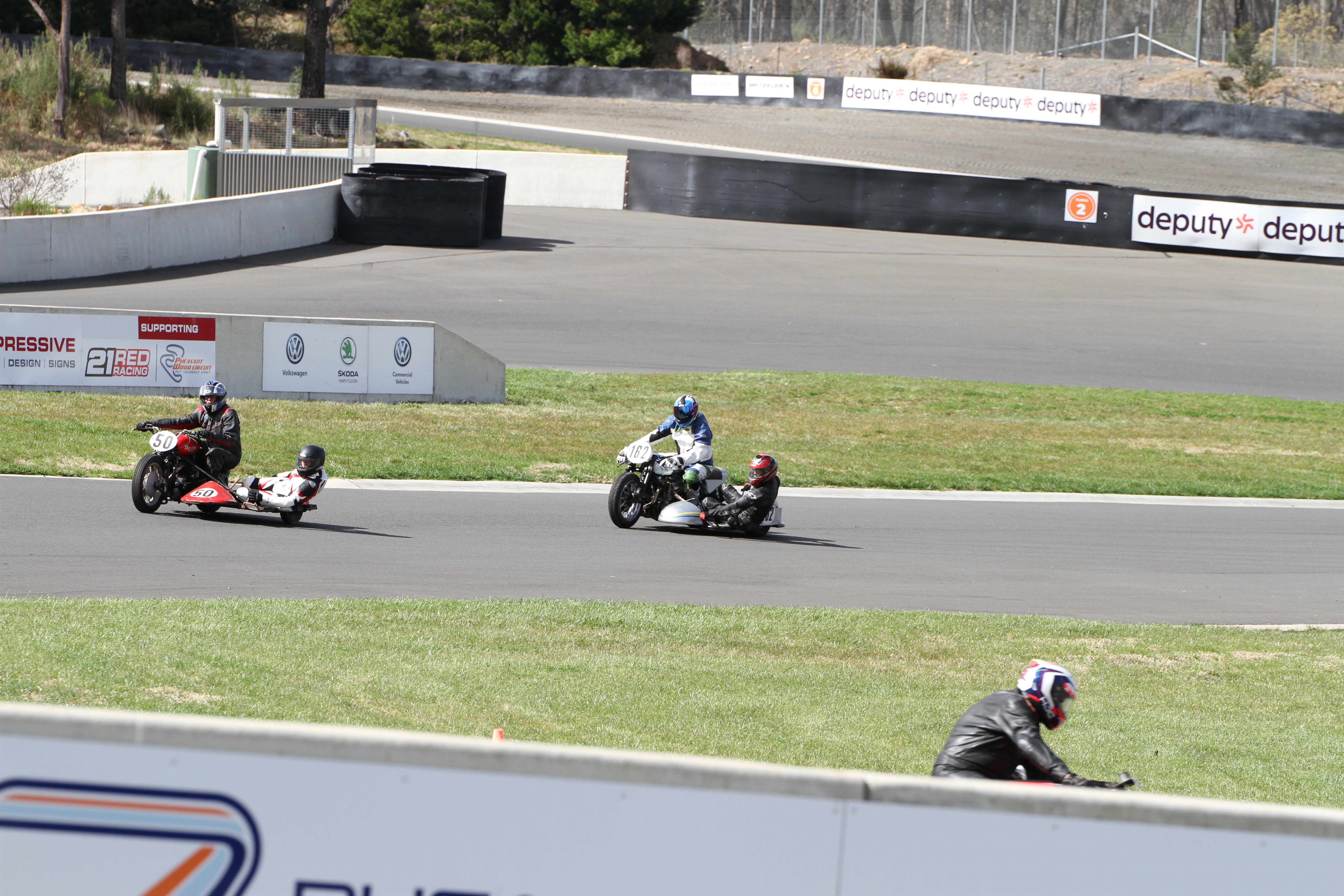 Due to the decreasing number of outfits running the passengers took a chance to share experience by swapping rides throughout Sundays events. Race four was the handicap and only three outfits took to the grid, unfortunately this event was red flagged when the Freeman brothers on number 51 rolled at the back of the track. Both rider and passenger were conscious when tended to by track medical staff, but passenger Billy was transferred to NSW Ambulance who took him to Goulburn Hospital with concerns about his leg. He was discharged later that day after scans cleared him of any major damage.