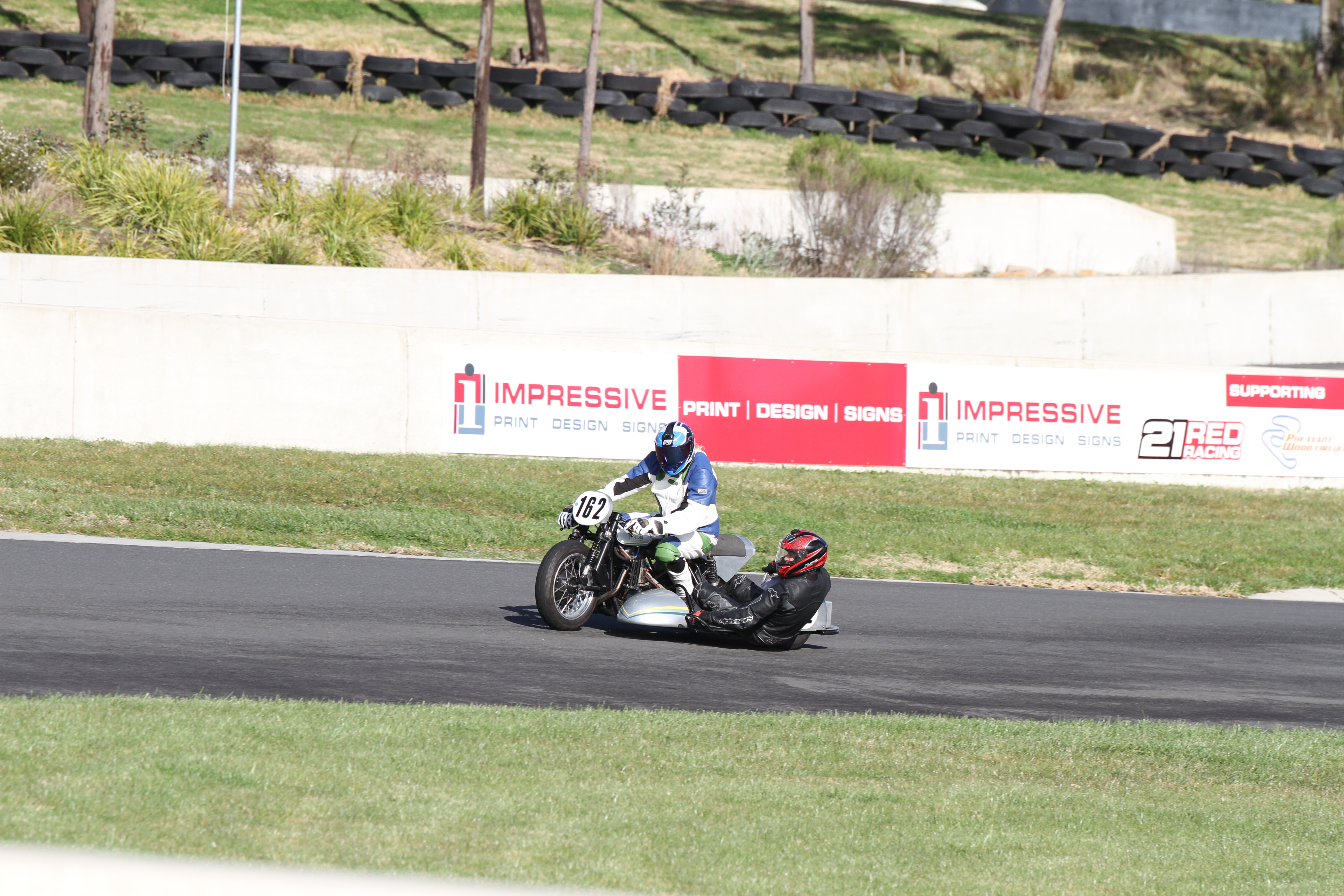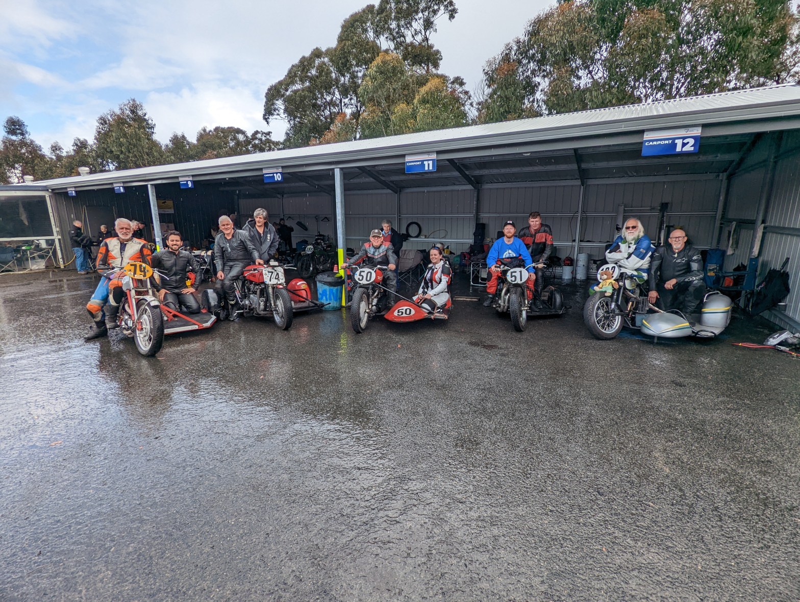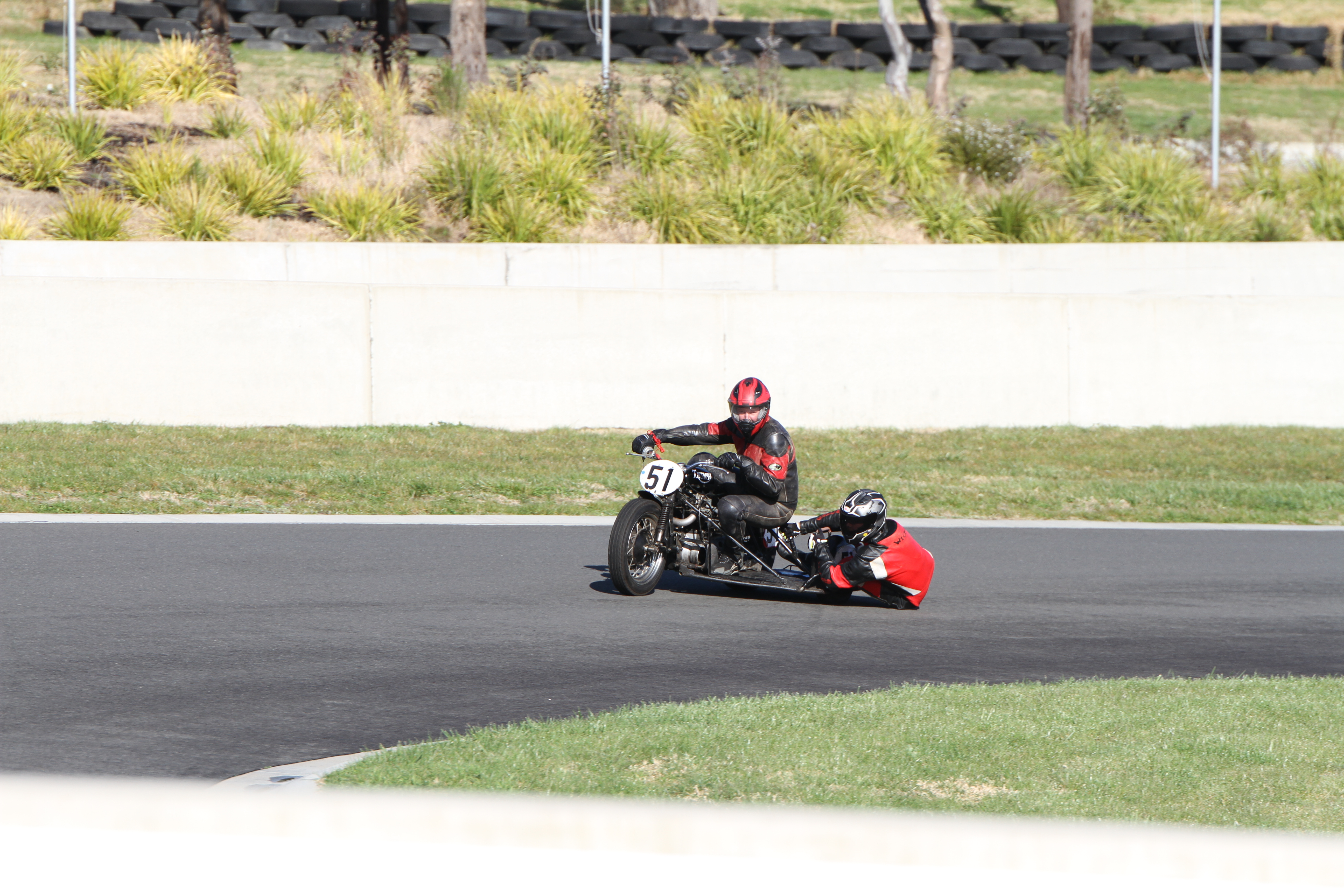The final race for the day saw more musical passengers, with Kayla jumping on with Rod on the number 62, and the surprisingly unscathed number 51 outfit went out with Greg as the rider and Scott jumped on the side. The Victorians pulled away during this final race, with the timing in Rod’s engine off after the points had to be replaced (thanks to a car competitor who shared spares that could be filed to suit) and Greg having to take it easy with Scott feeling some fatigue and stiffness from the earlier incident.
