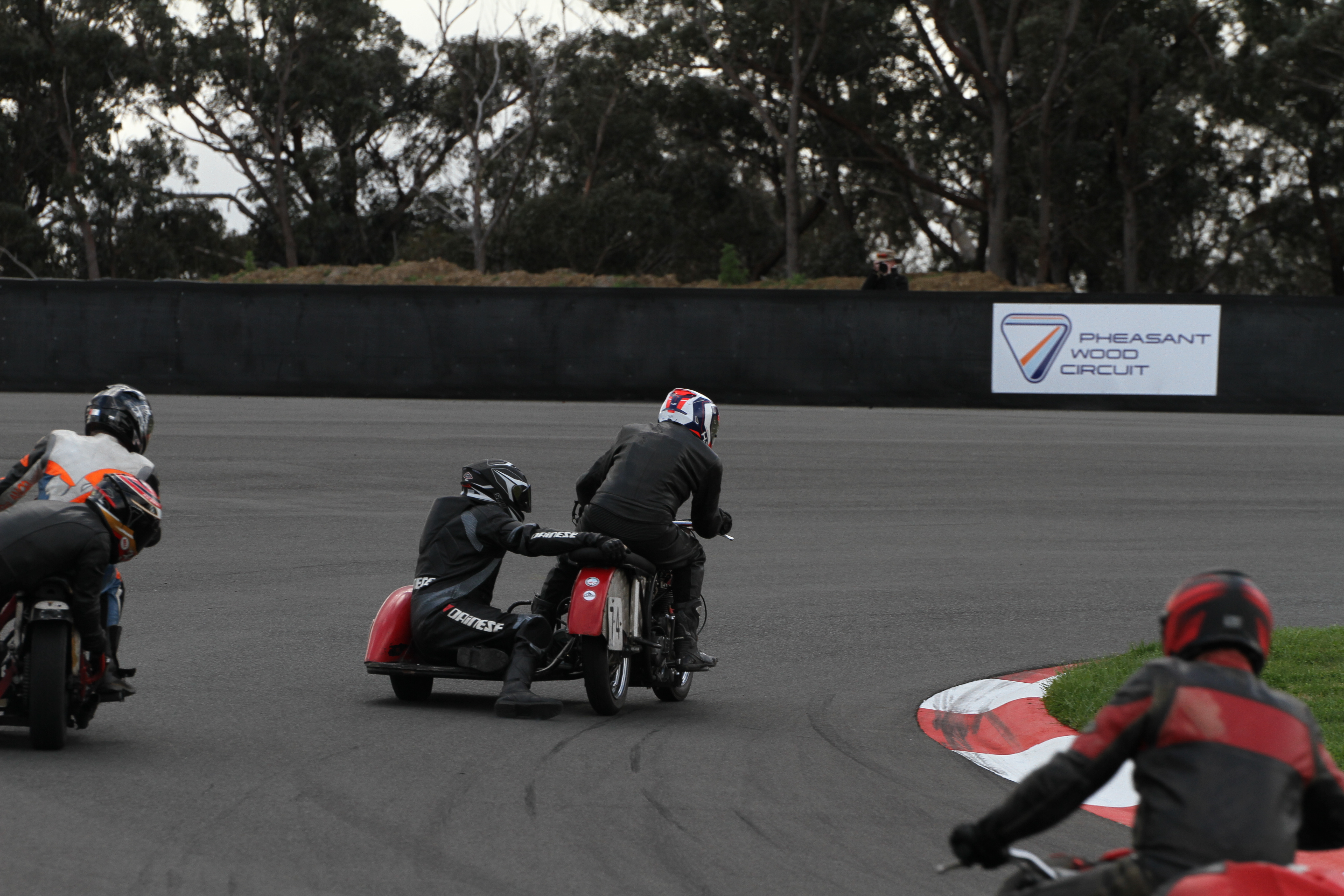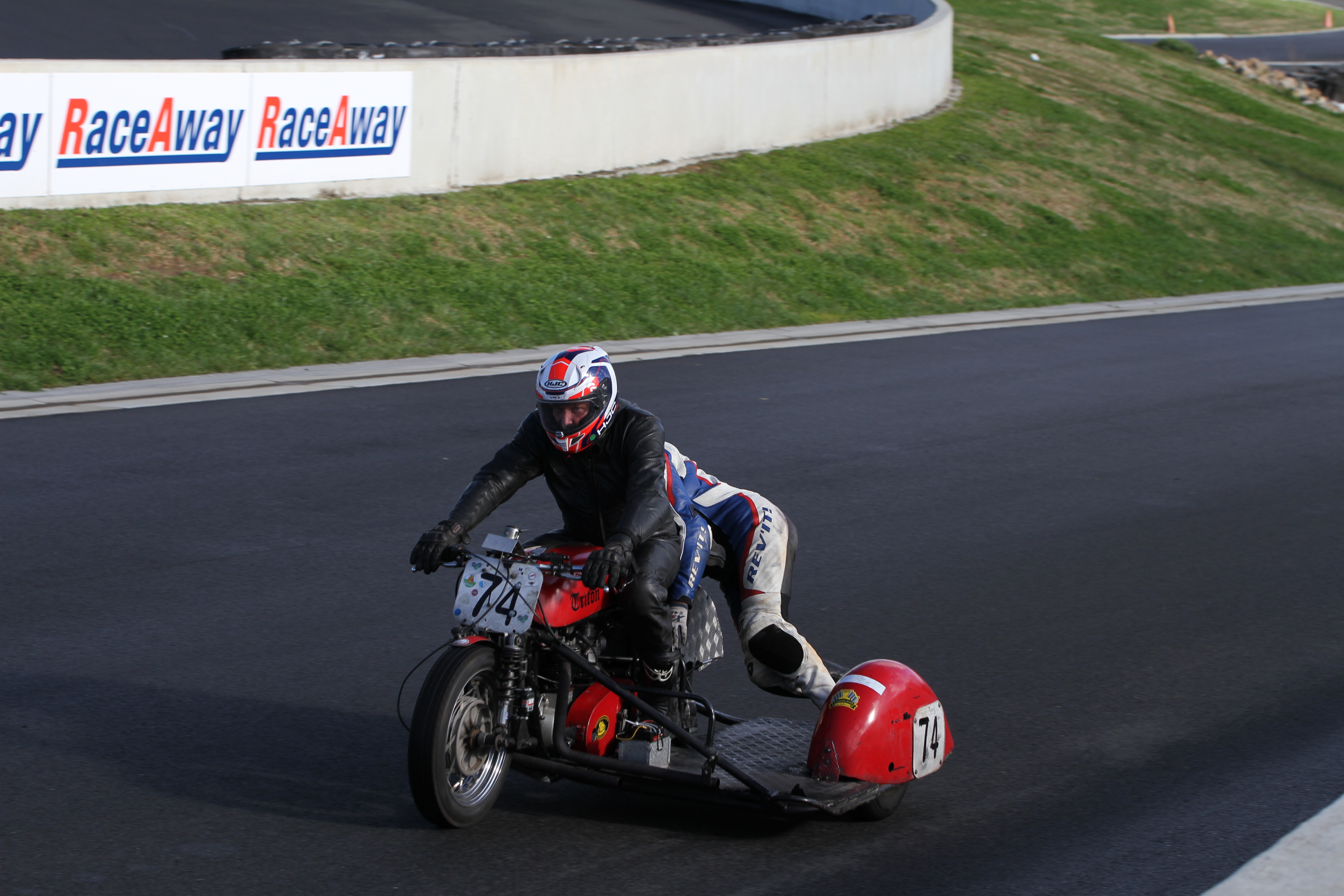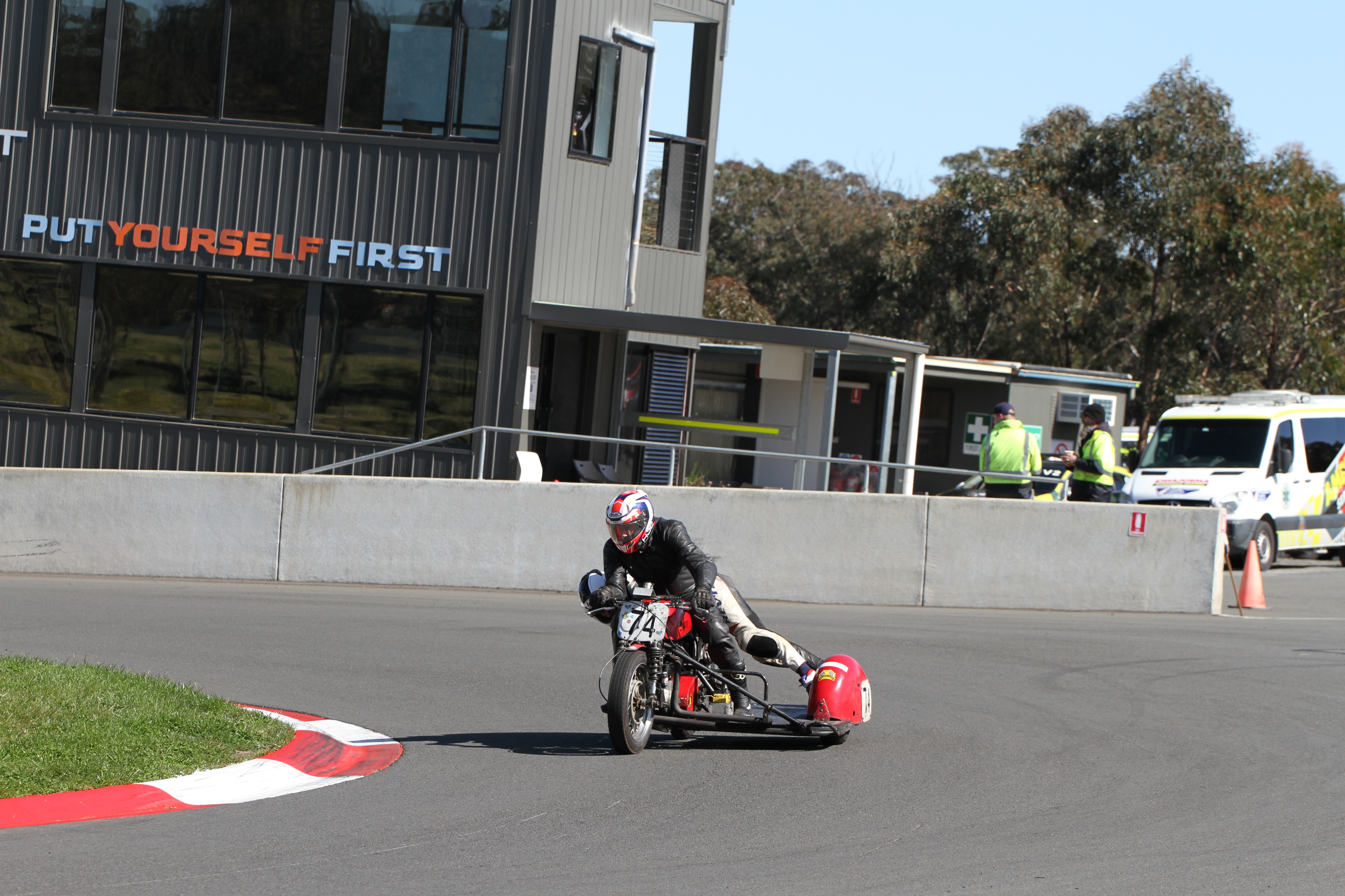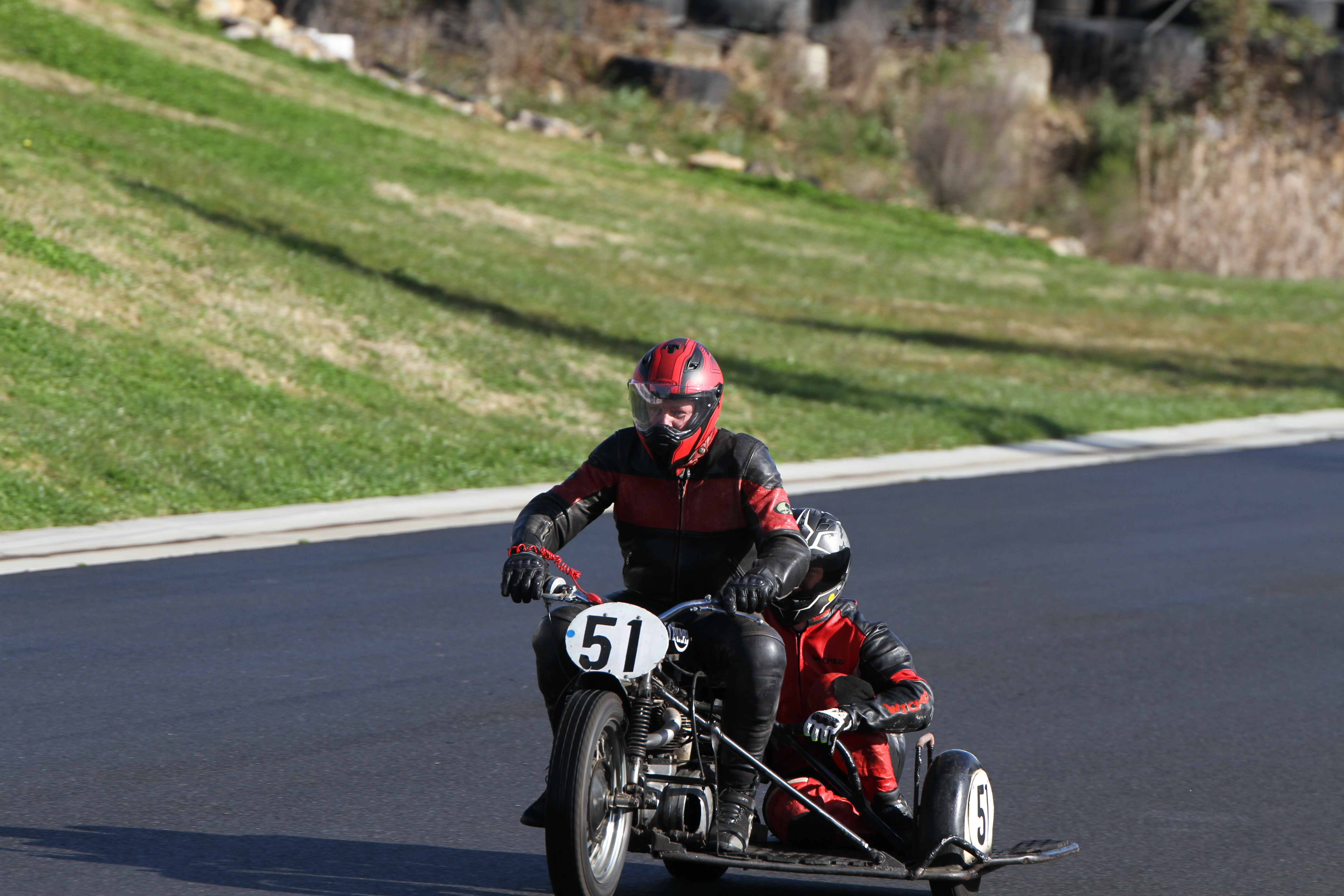 The final race for the day saw more musical passengers, with Kayla jumping on with Rod on the number 62, and the surprisingly unscathed number 51 outfit went out with Greg as the rider and Scott jumped on the side. The Victorians pulled away during this final race, with the timing in Rod’s engine off after the points had to be replaced (thanks to a car competitor who shared spares that could be filed to suit) and Greg having to take it easy with Scott feeling some fatigue and stiffness from the earlier incident.