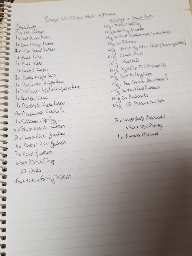 See attached list of Original Parts & New Spares included in sale, plus 2 Workshop Manuals( V50 Monza & V50 model, plus Owners Handbook)
