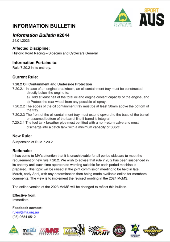 For reference we do need to note that oil contamination of circuits (not all) will become more of an issue in the future, so we need to be mindful in coming up with some form of prevention. This applies to all classes, not just historic machines or sidecars.