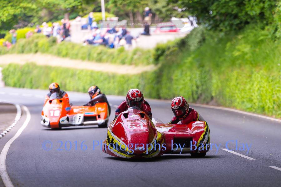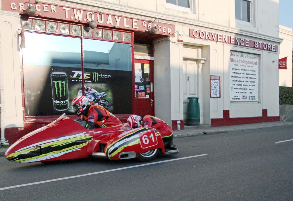 Off we continued, I thought we were doing reasonably well when I saw my distant cousin Pete Alton coming into Hillberry. I thought well I “just” have to overtake him! And we did, just before Ballagarey, then I then stuffed up Greeba Bridge and Pete passed us going into Ballacraine, we followed them through the Glen Helen, but I had to back off as I was watching them rather than my own lines. We picked up their tail coming out of Kates Cottage and used the power of the Dewith engine to pass them down Cronk-Y-Voddy straight.